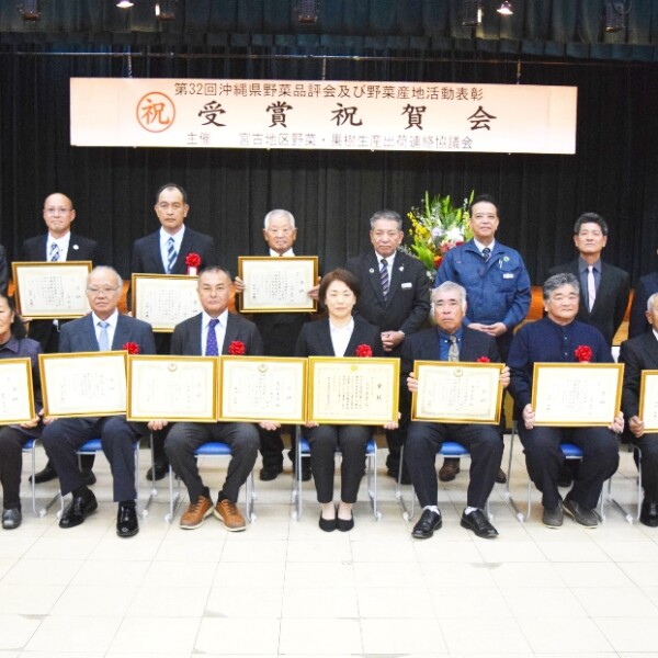 「第32回沖縄県野菜品評会及び野菜産地活動表彰受賞祝賀会」(宮古地区野菜・果樹生産出荷連絡協議会主催)が7日、JAおきなわ宮古地区本部2階大ホールで行われた。