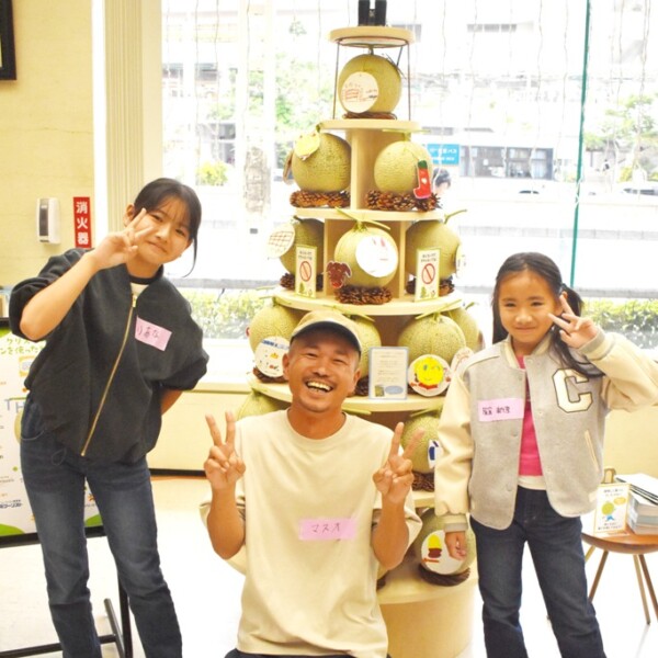 【那覇支局】市内でメロン栽培を行うエイトファームの増田充宏代表らは14日、「子どもたちと作り上げるメロンツリープロジェクト」として、那覇市の沖縄銀行本店に宮古島産メロンを使ったクリスマスツリーを設置した。