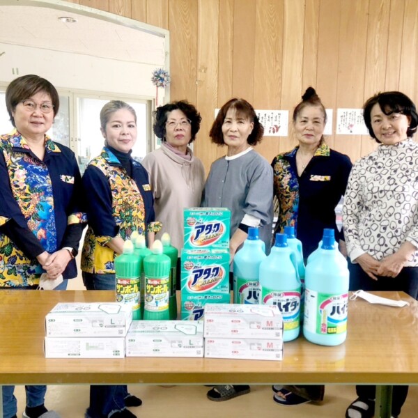 市伊良部商工会女性部はこのほど開催されたチャリティー演芸会の収益の一部を活用し1月31日、非営利活動法人サシバの会に清掃用品を寄贈した。
