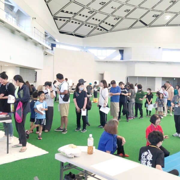 市生涯学習振興課は28日、JTAドーム宮古島で市民を対象とした体力テストを実施した。