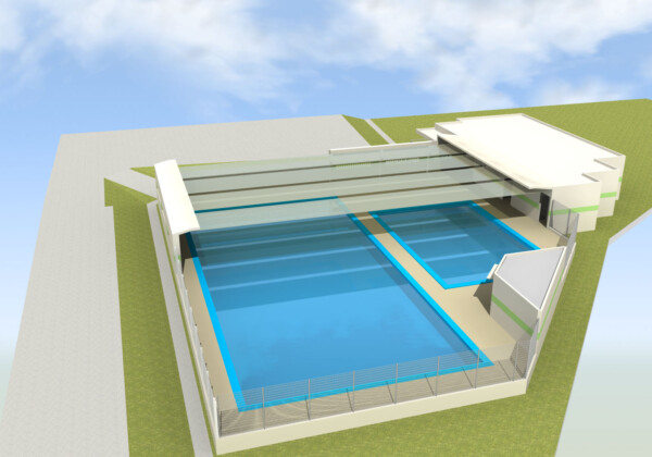 伊良部島小中学校(結の橋学園)のプール設置工事へ向け9日、同校敷地内で安全祈願祭を行い、着工した。
