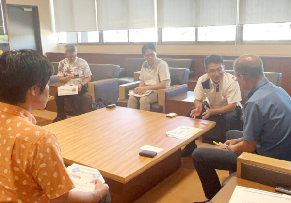 沖縄総合事務局運輸部の本村龍平部長らは9日、市役所を訪れ、嘉数登市長に対し「交通空白」解消に向けた国の最新施策を資料をもとに説明した。