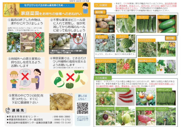 農林水産部宮古農林水産振興センターらによると市城辺で11月、アジア地域に広く分布する害虫「セグロウリミバエ」が県のトラップ調査で1頭確認された。