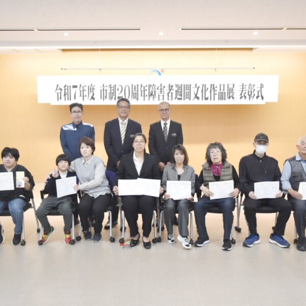 2025年度障がい者週間文化作品展(市制施行20周年記念事業)の表彰式が22日、市役所で行われた。