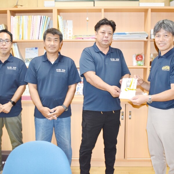 昭和50年生佐良浜同期会(42期卒業生、漢那竜也会長)は21日、伊良部島小・中学校(通称結の橋学園、佐久本聡校長)を訪れ、児童らの教育に活用してもらおうと寄付金を贈呈した。