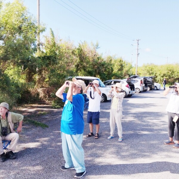 宮古野鳥の会(仲地邦博会長)は13日、伊良部長浜のたいこ橋近くの広場で、サシバの飛来数調査として「市民観察会」を実施した。