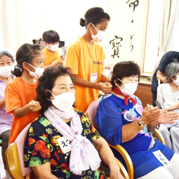 平良東仲宗根でデイサービス施設を運営するにこにこサービス(赤嶺節子代表)は15日、たのしいデイサービスで敬老会を開き、利用者約60人とその家族らが参加した。