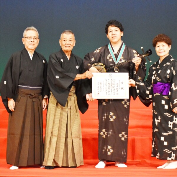 【那覇支局】7月7日に実施された第44回(2024年度)宮古民謡コンクール(主催・沖縄宮古民謡協会)の合格者表彰式が22日、浦添市のアイム・ユニバースてだこ大ホールで行われ、各賞合格者合わせて37人に賞状とメダルが贈られた。グランプリ賞を受賞した粟國翔平さんには副賞として三線が贈られた。
