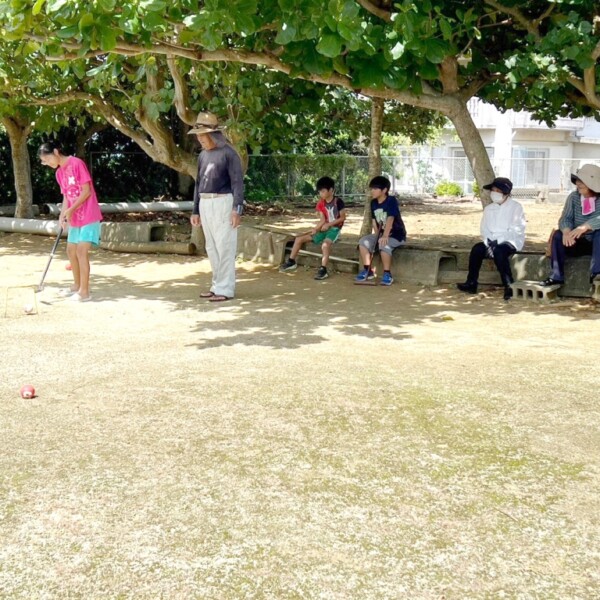 市社会福祉協議会は22日、上野構造改善センター前の広場で「皆でゲートボールを楽しもう!」と題した世代交流の場を開催した。