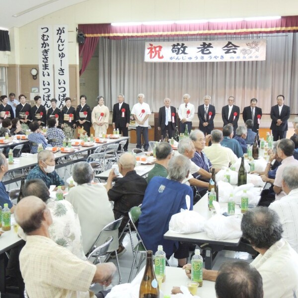 平良西原地区の敬老会(西原自治会主催)が16日午後、西原地区公民館で行われた。