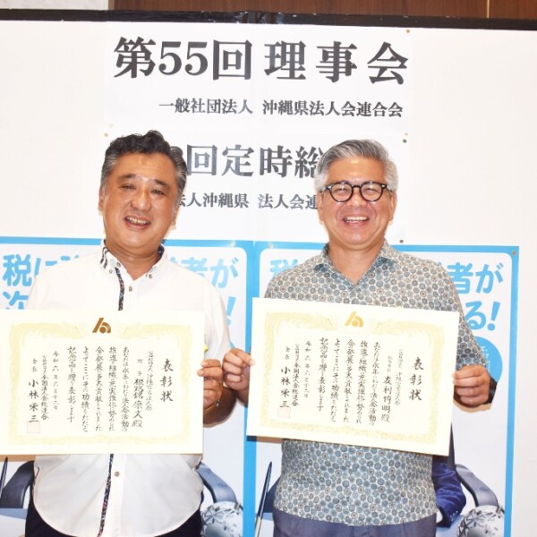 根路銘、友利さん全国表彰 県法人会連合会 下地さんは県連表彰