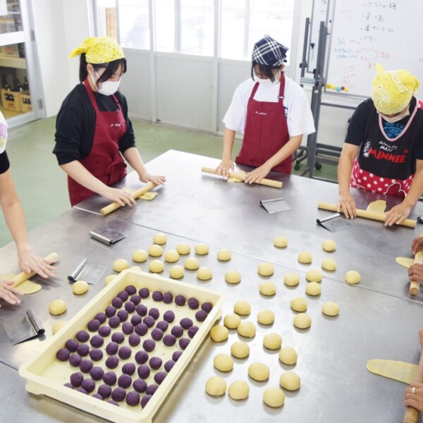 宮古総合実業高校の英語クラブの生徒や教員らが1日、英語でコミュニケーションを取りながらの「黒糖紅イモパン作り」を行った。