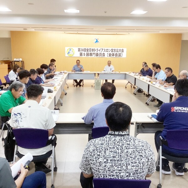 宮古島トライアスロン実行委員会(委員長=嘉数登副市長)は29日、市役所で第5回専門委員会(全体会議)を開催し、4月14日に実施された第38回全日本トライアスロン宮古島大会の振り返りを行った。