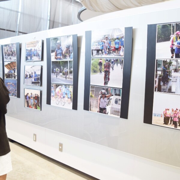 4月14日に開催された第38回全日本トライアスロン宮古島大会の写真展(主催・宮古写真協会)が、12日から未来創造センター市立図書館ブラウンジングコーナーで行われている。