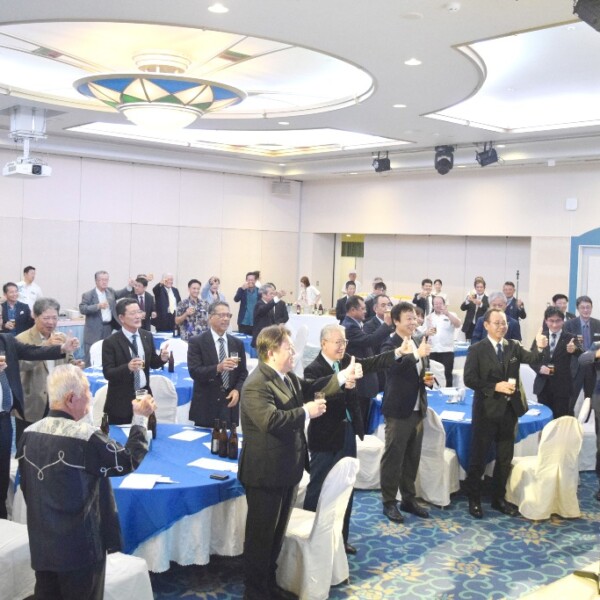 祝賀会は、中尾忠筰副会頭の開会挨拶で始まった。中尾副会頭は竹の成長を例に「節目を強くすることで次の10年、20年の成長につながる」と述べ、設立50周年の重みを強調した。