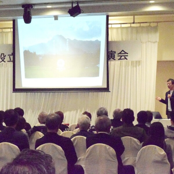 宮古島商工会議所設立50周年記念式典の記念講演が27日夕、平良下里のホテルで行われ、オガール社の岡崎正信代表が「離島こそ価値~都会のマネをすると失敗する~」をテーマに講演した。