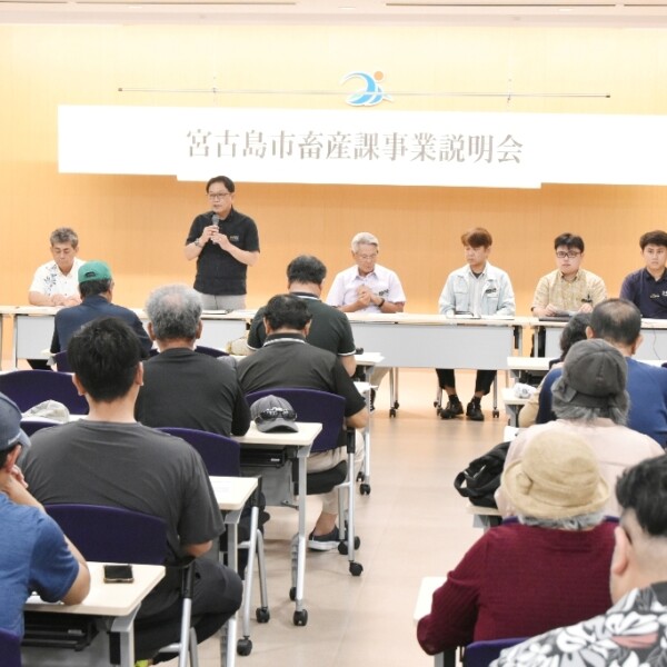 市農林水産部畜産課は12日、市役所で市内で肉用牛を飼養する農家に対する2024年度事業説明会を開いた。