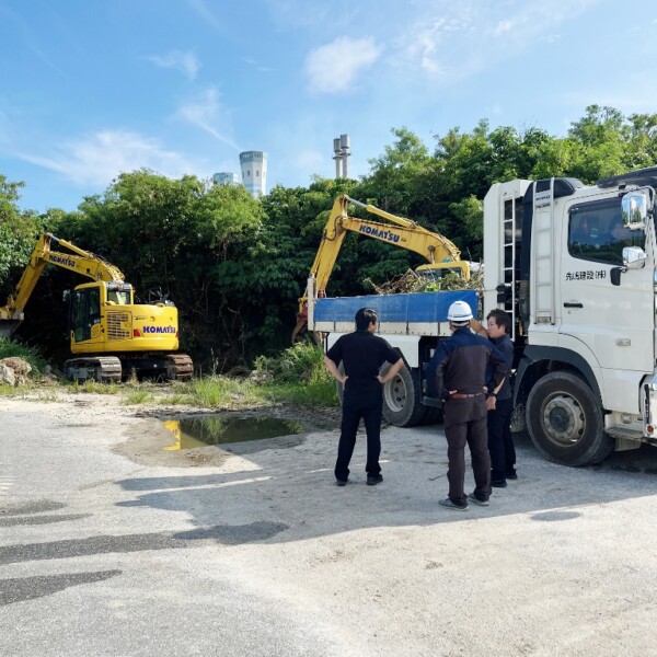 先嶋建設は、5月31日から平良荷川取の臨港道路1号線周辺の雑木を伐開し、浸透池や安全柵を設ける冠水対策の工事を行った。