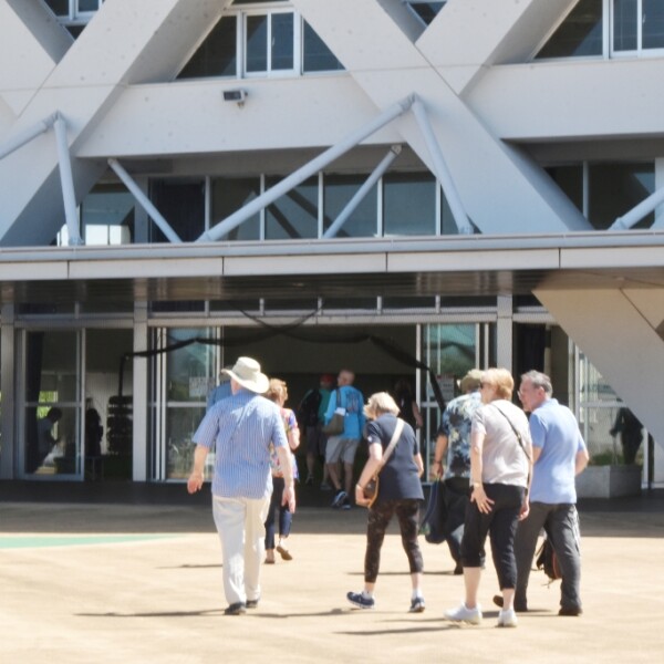 午前10時半ごろのJTAドーム宮古島では下地や上野からの避難者が数人ほどおり、隣接するサンエー宮古シティの屋上にも十数台の車の中で避難していた。