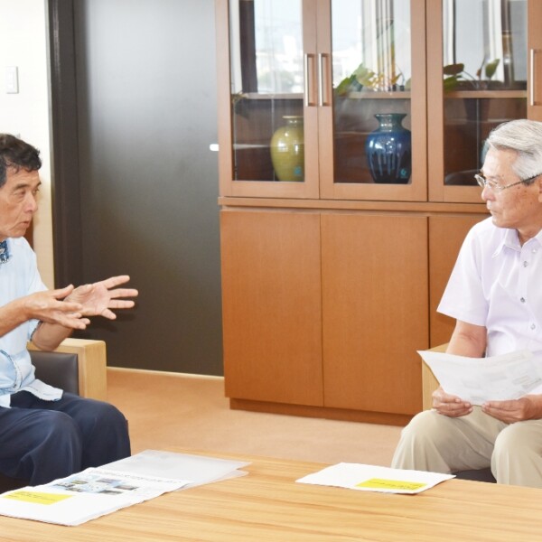 池間漁業協同組合の與那嶺大組合長は12日、市役所に座喜味一幸市長を訪ね、昨年実施した池間島八重干瀬周遊ツアー造成・実証事業(観光庁補助金活用)の事業報告を行った。