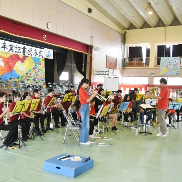 東小学校の金管バンド部は17日、北中学校吹奏楽部を招き「東小金管バンド部卒業演奏会with北中学校吹奏楽部」を同校体育館で開催した。