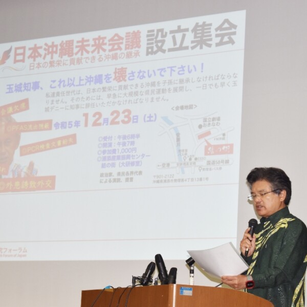 【那覇支局】日本沖縄政策研究フォーラムの仲村覚理事長らは23日、浦添市の浦添産業振興センター(結の街)で日本沖縄未来会議の設立集会(議長・仲村覚氏)を開き、参加した80人が設立を確認するとともに決議文も採択した。