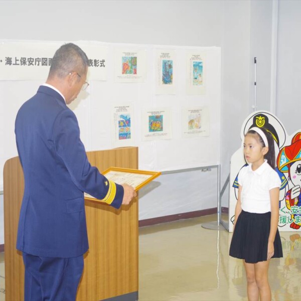 海上保安庁が10月23日に発表した「第24回未来に残そう青い海・海上保安庁図画コンクール」の表彰伝達・表彰式がこのほど、平良港湾合同庁舎で行われた。