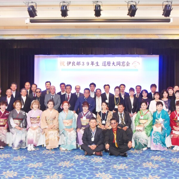 1964年生まれの伊良部中学校の卒業生が還暦のため集い、大同窓会が22日夕、市内下里のホテルで開催された。
