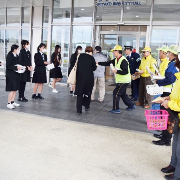 「交通安全まもりま~す(塩)・クリスマス作戦」(主催・宮古島警察署、宮古島地区交通安全協会)のイベントが22日、市役所市民広場で行われた。