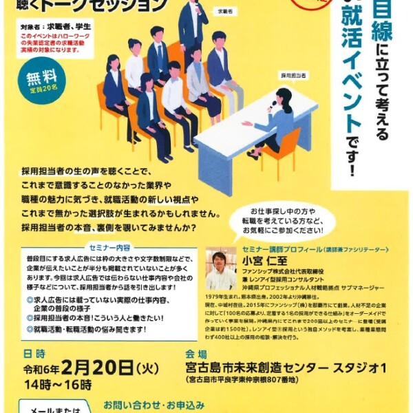 求職者や学生に向けて、企業の採用担当者の本音を聴くことができる新しい就活イベントが20日、市未来創造センター(スタジオ1)で開催される。