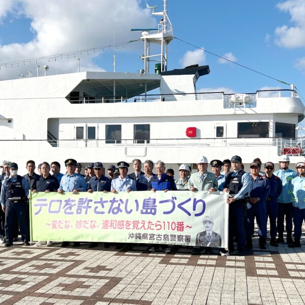 2023年平良港保安総合訓練(主催・同港保安対策協議会)が20日、漲水地区クルーズ岸壁で実施された。