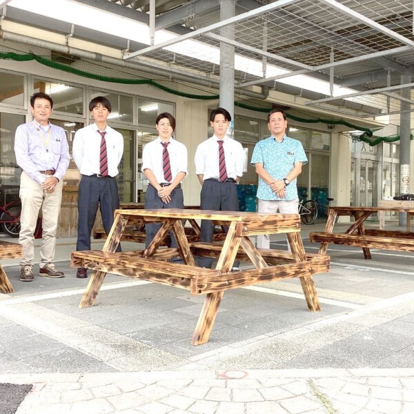 宮総実生徒らがテーブル寄贈 市の依頼で公設市場へ