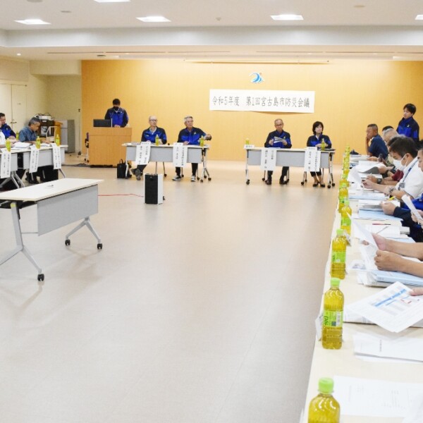 2023年度第1回市防災会議(会長=座喜味一幸市長)が7日、市役所2階ホールで行われた。