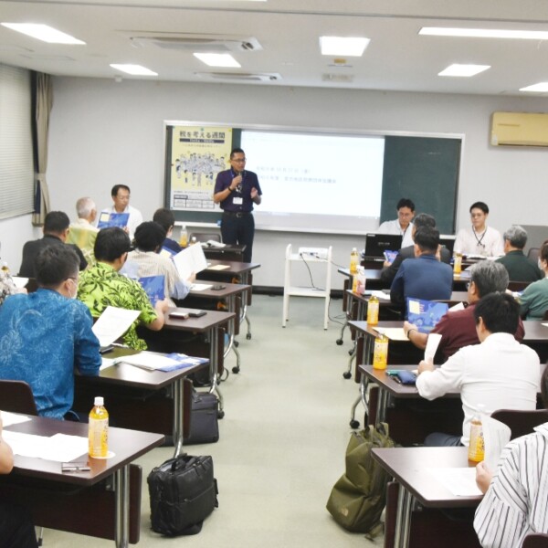 市環境衛生局環境保全課は27日、市役所で「与那覇湾の赤土等流出問題を考えよう」と題した講演やワークショップのイベントを開催した。