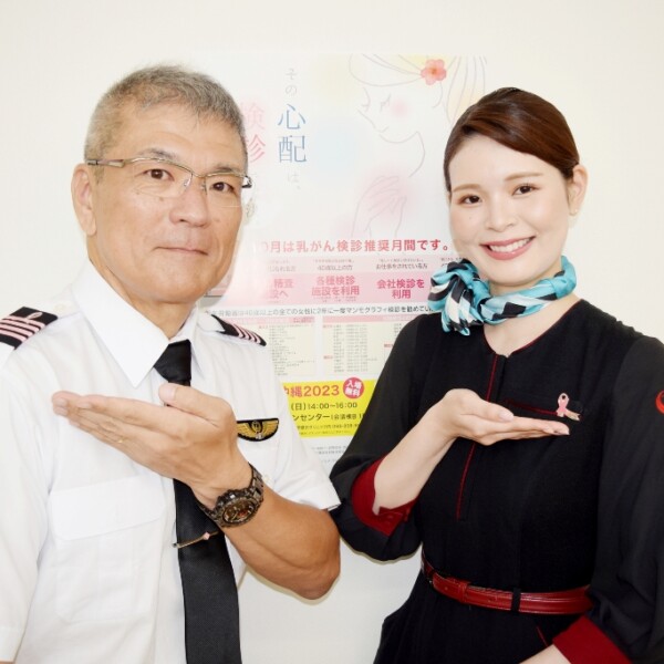 【那覇支局】乳がんの検診率を高めようと乳がん検診推奨月間の10月、日本トランスオーシャン航空(JTA)、琉球エアーコミューター(RAC)など沖縄地区日本航空(JAL)グループは…