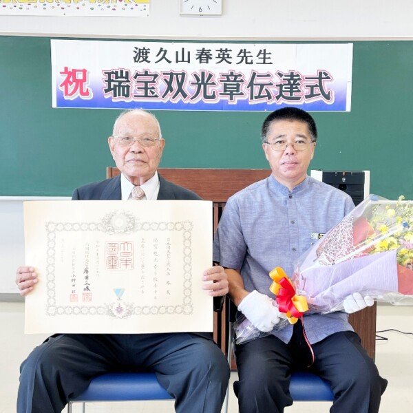 多良間村仲筋出身で同小学校校長を務めた渡久山春英さんは2023年春の叙勲で、教育功労者として瑞宝双光章を受章。