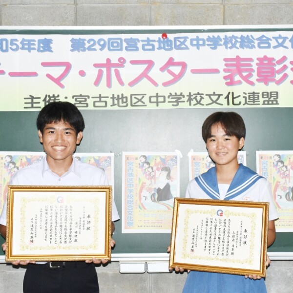11月に開催される第29回宮古地区中学校総合文化祭のテーマに濱川晴紀さん(西辺中3年)、ポスターに与那覇日菜さん(同)の作品が最優秀賞に選ばれた。