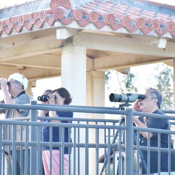 宮古野鳥の会(仲地邦博会長)は17日、下地嘉手苅の入江橋でアカハラダカ市民観察会を行った。