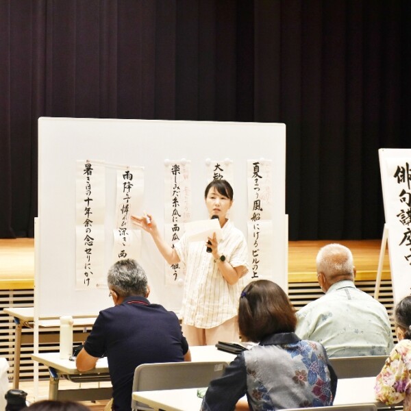 市文化協会文芸部会は市民総合文化祭・一般の部の一環として20日、未来創造センター多目的ホールで俳誌「円虹」主宰でNHK俳句選者の山田佳乃さんによる講演とワークショップを開催した。