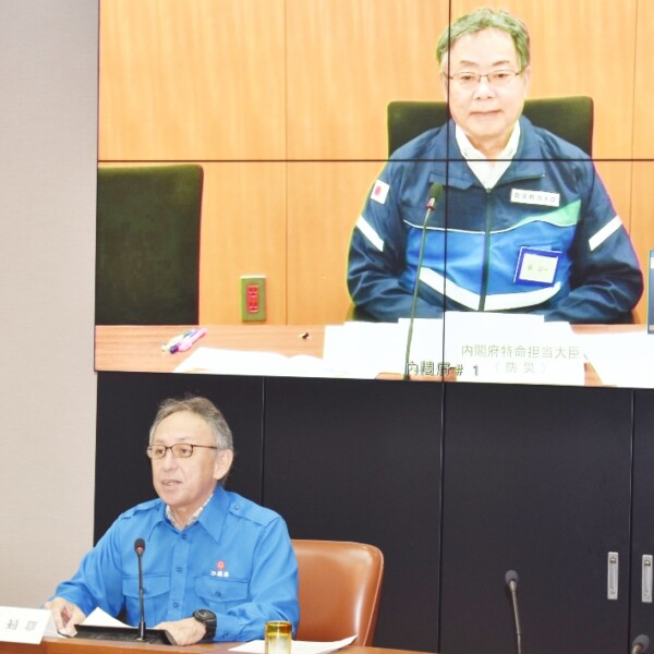 【那覇支局】玉城デニー知事は4日、オンラインで谷公一防災担当大臣と台風6号の災害対応を協議した。