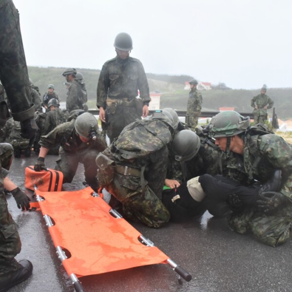 陸上自衛隊宮古島駐屯地は4日、城辺の保良訓練場などで新配属された隊員を対象に長期間の台風影響で輸送力が限られた状況を想定した徒歩行進及び救援・人命救助訓練を行った。