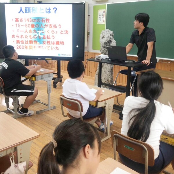 (公社)沖縄宮古法人会青年部会は23日、池間小中学校で租税教室を開いた。