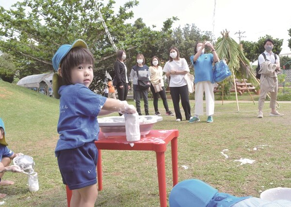 こども保育環境研究所が企画する研修が宮古島で行われており、10日、はなぞのこどもえん(新城久恵園長)の視察が行われた。