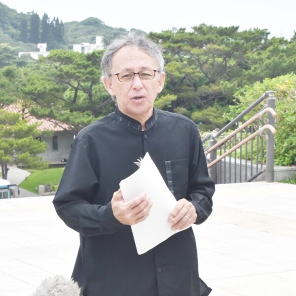 【那覇支局】玉城デニー知事は23日の沖縄全戦没者追悼式終了後、糸満市摩文仁の沖縄平和祈念堂で記者団の取材に応じ