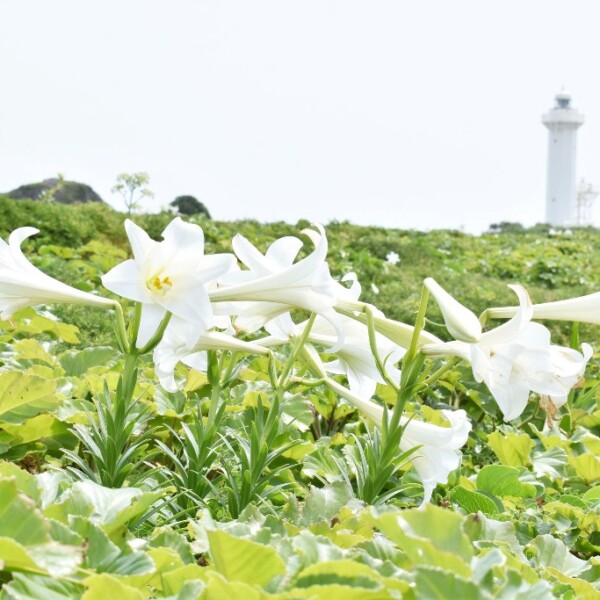 城辺保良の東平安名崎でテッポウユリが開花の最盛期を迎えている。16日に開催される全日本トライアスロン宮古島大会ではバイクコースになっており、白い花々が選手たちにエールを送ってくれそうだ。