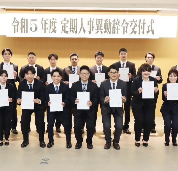 宮古島市に2023年度、新たに21人の職員が採用された。座喜味一幸市長など主管長から一人ひとり辞令を手渡された新人職員らは、整列して宣誓文を読み上げ…