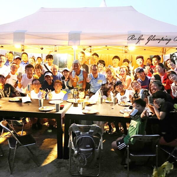 トライアスロン宮古島大会から一夜明けた17日、来間島のRuGuGrampingResortで島内の参加選手を中心にお疲れ様会が催された。