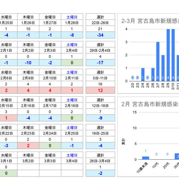 新型コロナ1日、宮古島市は0(推定値4)人【速報値】