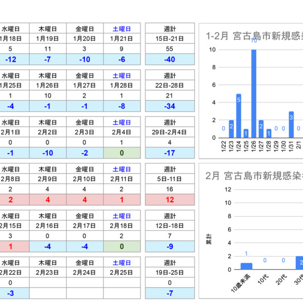 新型コロナ22日、宮古島市は0(推定値2)人【速報値】