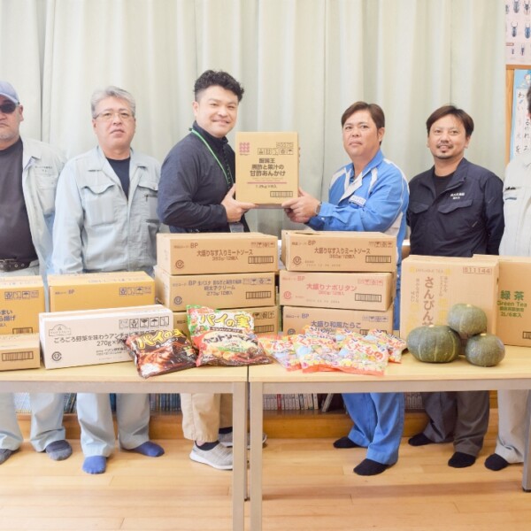 下南地区工事安全連絡協議会(玉元博光会長)は1日、地域貢献の一環として、沖縄こどもみらい創造支援機構が運営するひらら・ぐすくべ児童館に食品を寄贈した。
